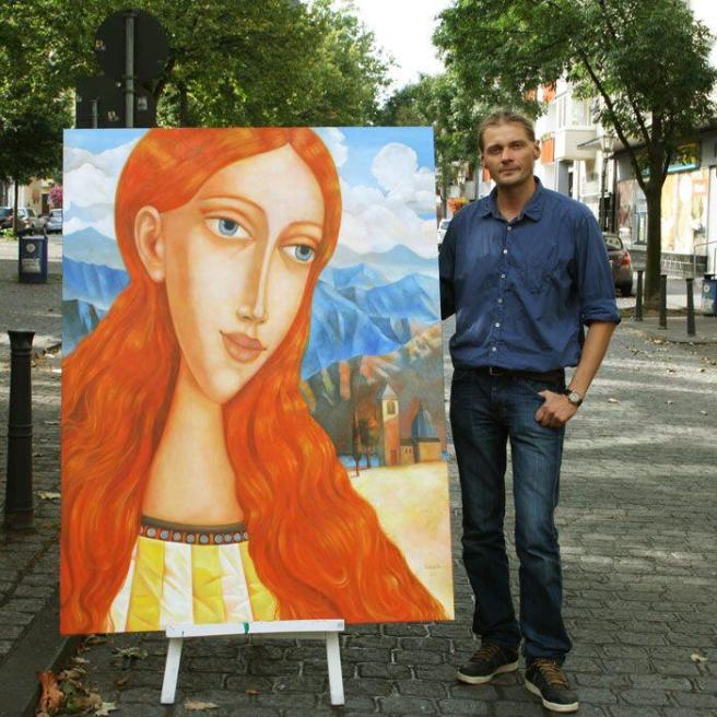 The lack of an official agent or manager also impedes his progress, somewhat.  In addition, it is sometimes rather difficult retrieving your work after an exhibition, since some gallery owners lose both interest and motivation to return borrowed items afterward.  However, there are many advantages of working as an independent artist.  Sheludyakov is able to confront the “metaphysical side of reality” every day.  He is an avid reader, amateur photographer, and enjoys the cinema and traveling.  He appreciates feminine beauty and attempts to magically translate that love onto a canvas or linen, his preferred medium.   When asked if his work as a particular message or theme, his response was quite simple: “Enjoy life.”